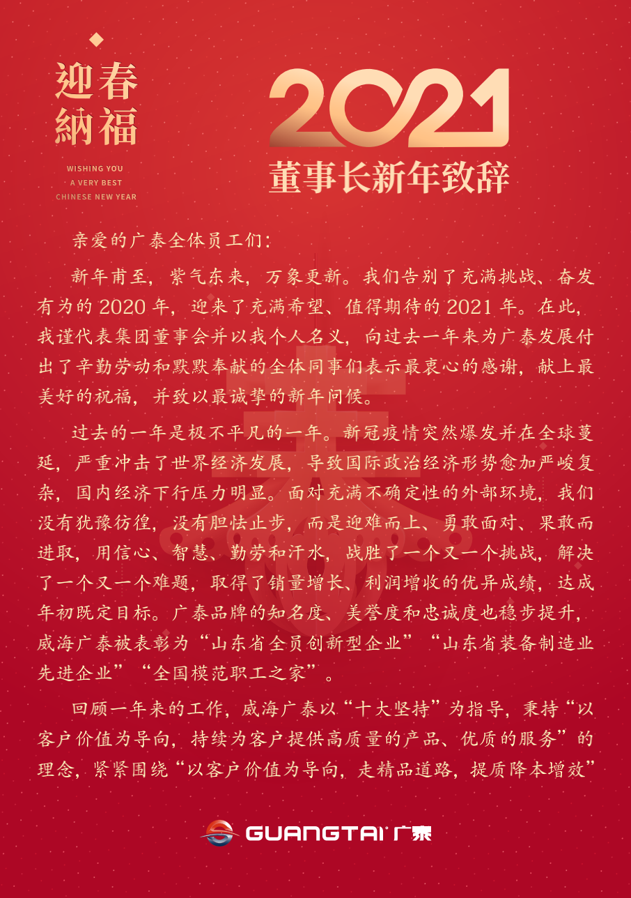 “感動(dòng)”與“最美”觸動(dòng)心靈;“目標(biāo)”和“囑托”催人奮進(jìn)。回首2020,新冠疫情突然爆發(fā)并在全球蔓延,廣泰集團(tuán)科學(xué)防控疫情,嚴(yán)密組織復(fù)工復(fù)產(chǎn),以“十大堅(jiān)持”為綱,以技術(shù)創(chuàng)新為龍頭,以客戶價(jià)值為導(dǎo)向,走精品道路,提質(zhì)降本增效,打造智能化高端保障裝備制造平臺(tái),實(shí)現(xiàn)集團(tuán)高質(zhì)…