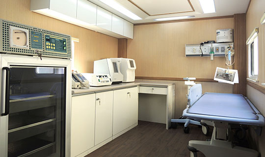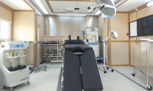 廣泰手術(shù)車通過層流凈化裝置達(dá)到艙內(nèi)環(huán)境萬級凈化標(biāo)準(zhǔn),整車集成供氧、制氧系統(tǒng),安裝手術(shù)床、無影燈及其他手術(shù)專用儀器設(shè)備,在應(yīng)急情況下實施手術(shù)救援。